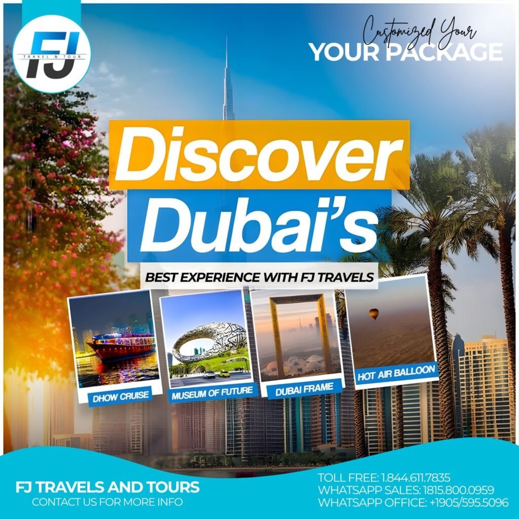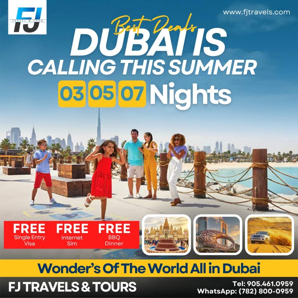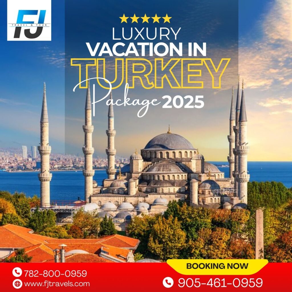 FJ Travels and Tours is a trusted Canadian travel agency offering Vacation tours and packages from Canada, USA and around the world to Dubai, Turkey, Cairo, Saudi Arabia and more. We offer lowest prices on international flights, customized vacation packages and reliable visa services. With over 15 years of industry experience, we specialize in delivering seamless, stress-free travel experiences for individuals, families, and groups. Whether you’re planning a spiritual journey to Saudi Arabia, a luxury trip to Dubai or Turkey, or need expert flight booking services, our dedicated team is here to support you 24/7. We provide competitive pricing,